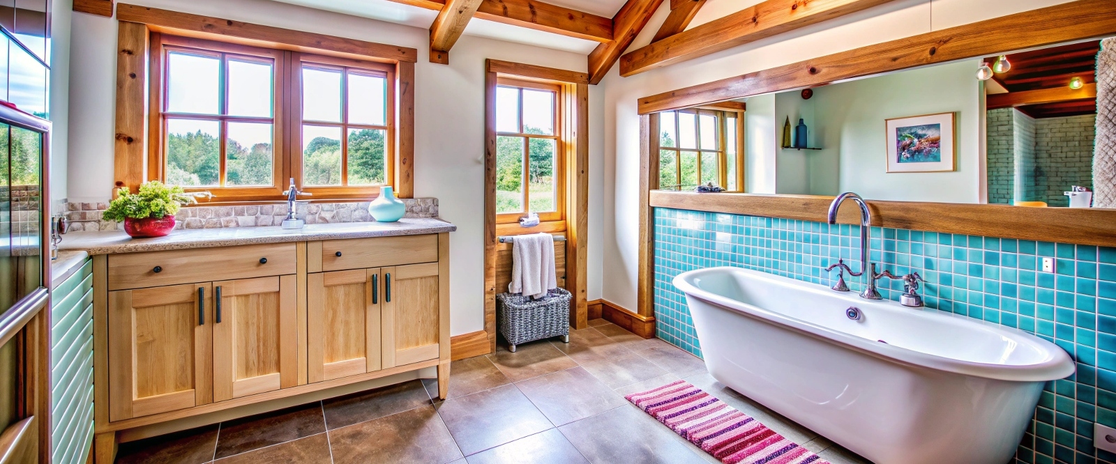 Отделка помещения ванной комнаты. Финишную отделку стен и потолка желательно производить влагостойким материалом, таким как влагостойкий ГКЛ, пластиковые панели, керамическая плитка, виниловые покрытия. Если по эстетическим соображениям очень хочется оставить дерево, то его необходимо периодически (1 раз в год) обрабатывать водоотталкивающим составом.