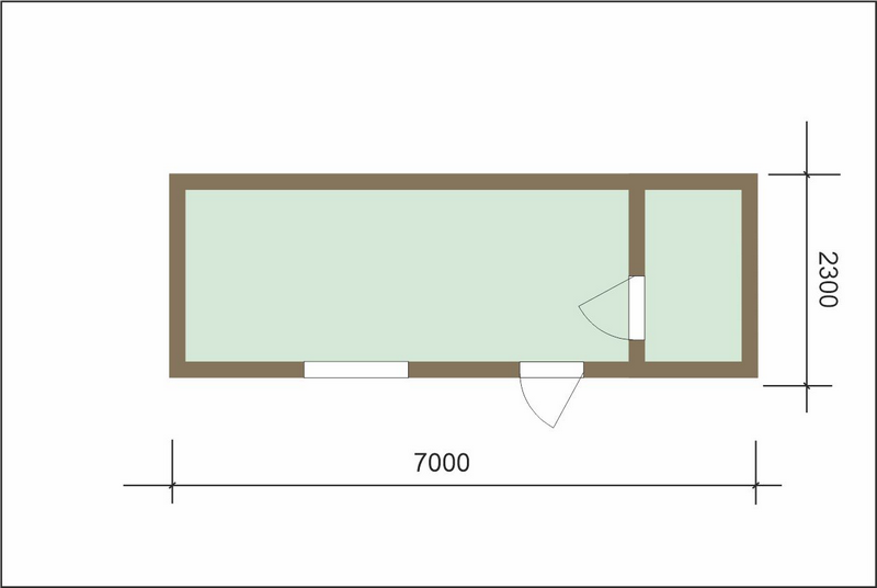 Небольшой дачный домик «Турист 7х2,3» – простое, но очень практичное решение для организации зоны отдыха на дачном участке. Площадь строения составляет 16,1 м2, внутри предусмотрено два помещения, которые при желании можно зонировать дополнительно.
