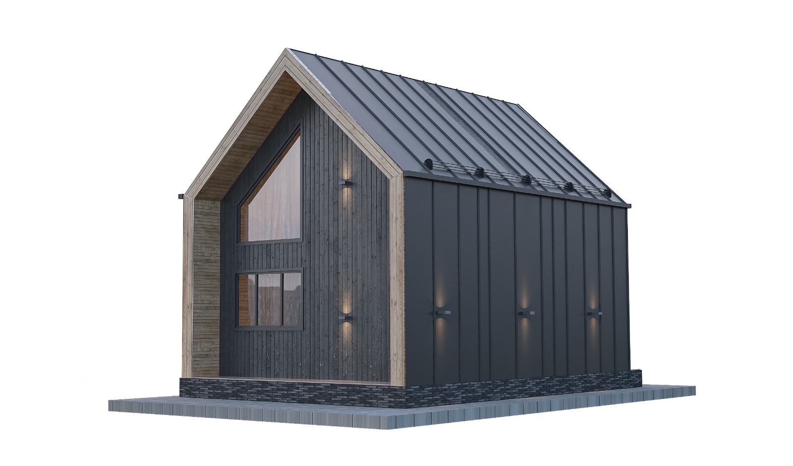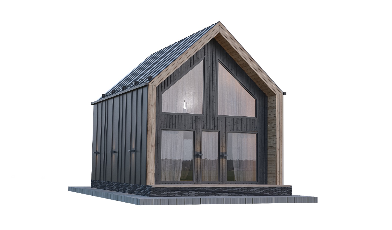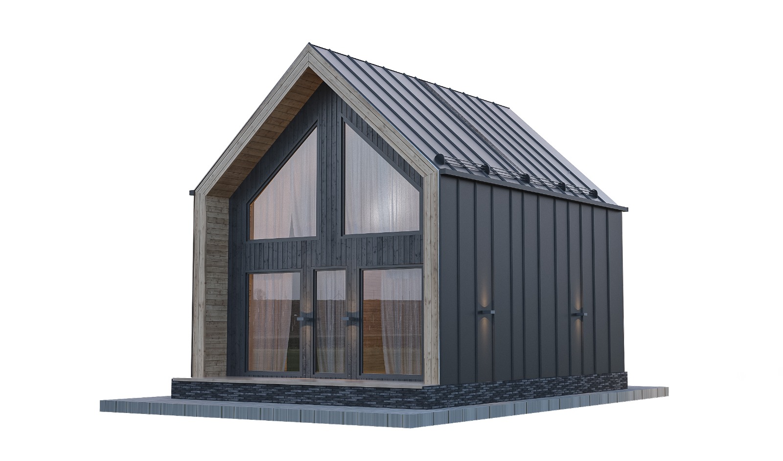 | Окна, Двери | Металлопластик -5 камер, ламинация с двух сторон, стеклопакет 32мм (3 стекла), фурнитура Эндоу. *в барн хаус 6х8 и 6х9 в трпапецевидное окно с задней стороны дома будет иметь стеклопакет 2 стекла. |