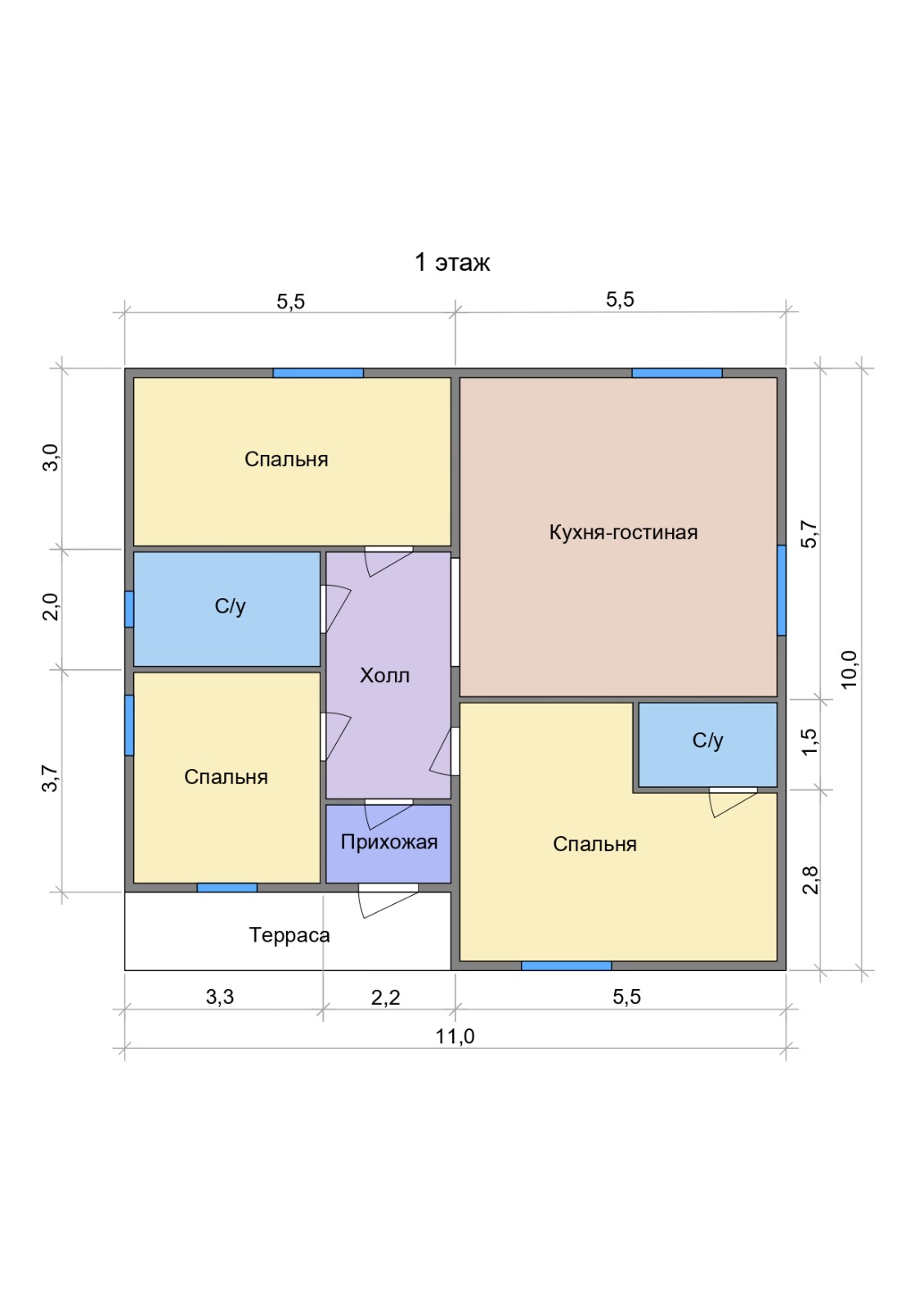 Проект одноэтажного каркасного дома «Вега 10 х 11»