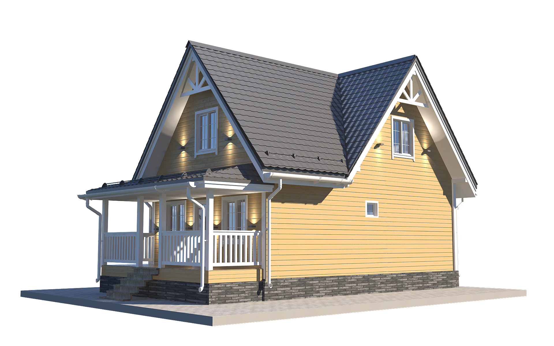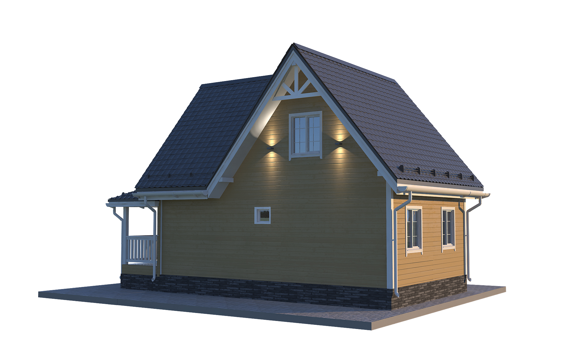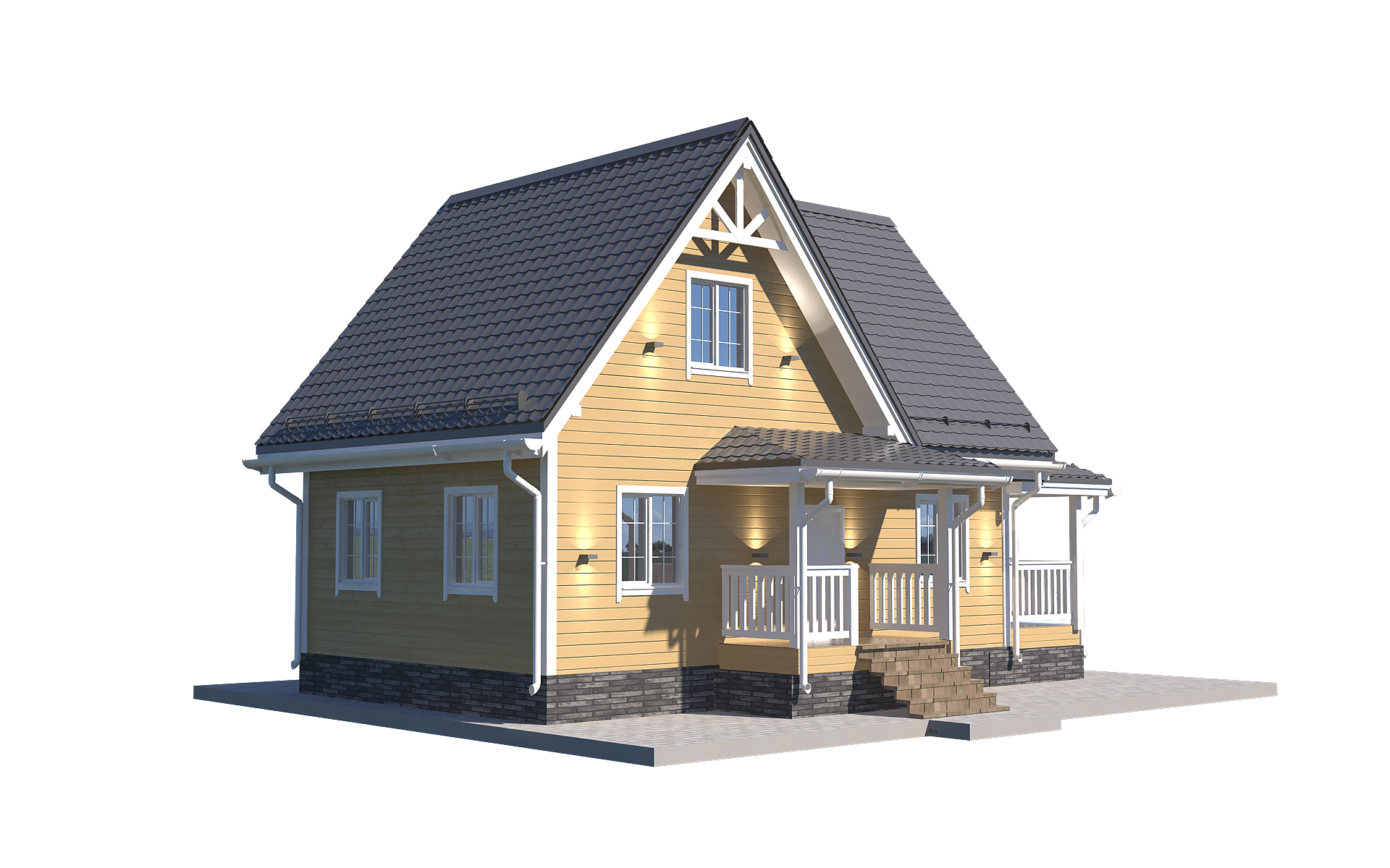 Коттедж «Гармония 6х9» спроектирован с акцентом на комфорт, удобство и эргономику. Фундамент опорно-столбчатого типа гарантирует надежность и долговечность конструкции. Крыша выполнена из ондулина, который не боится ветра, осадков и любой непогоды. Пол изготовлен из OSB щитов с биозащитой и OSB плит с утеплением 100 мм.