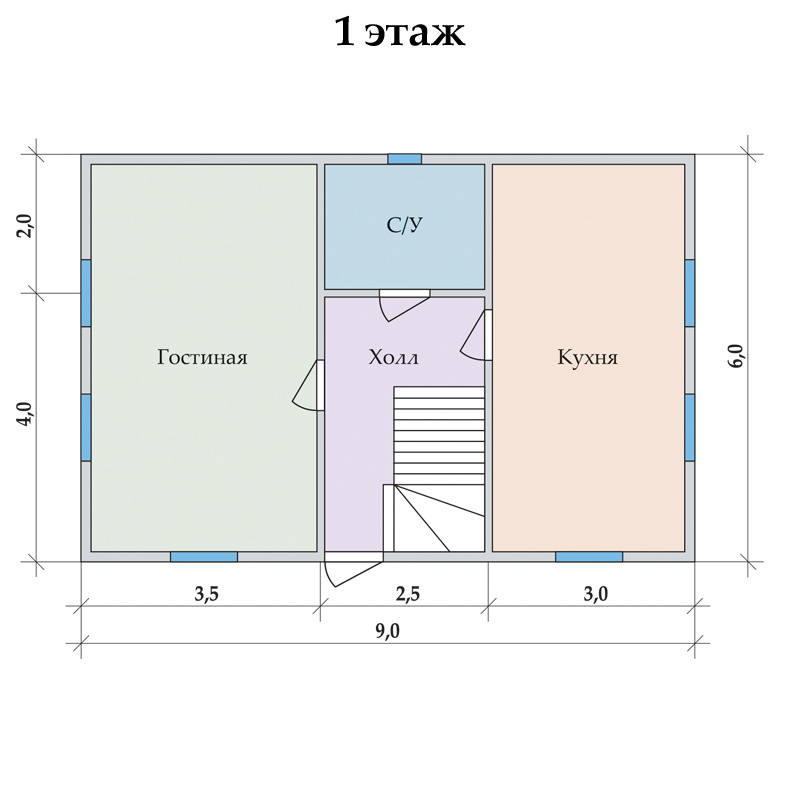 Коттедж «Гармония 6х9» – уютное решение для вашей семьи. Просторный двухэтажный дом на четыре комнаты площадью 102 м2 имеет идеальную для комфортного проживания планировку.