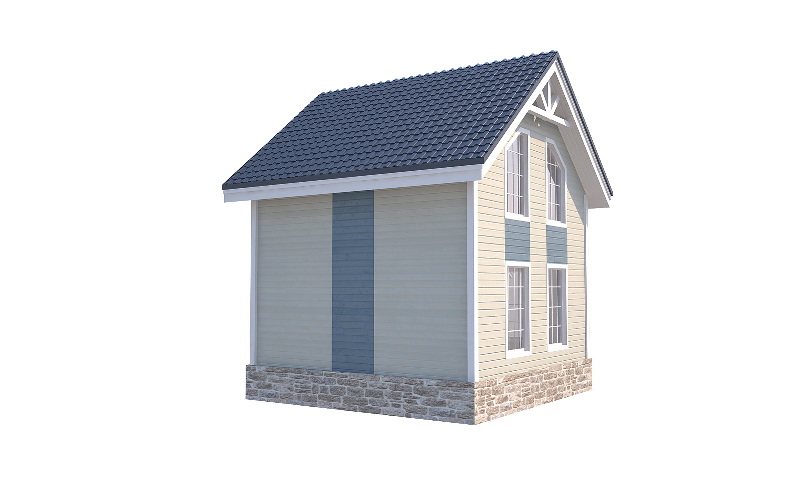 Дом двухэтажный, с эргономичной планировкой. На первом этаже – просторный холл, из которого мы попадаем в светлую гостиную, совмещенную с кухней, а с другой стороны – в санузел и спальню. В конце холла – удобная лестница, ведущая на второй этаж. На втором этаже организована настоящая зона отдыха с тремя просторными спальнями.