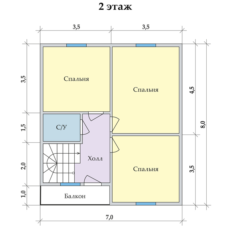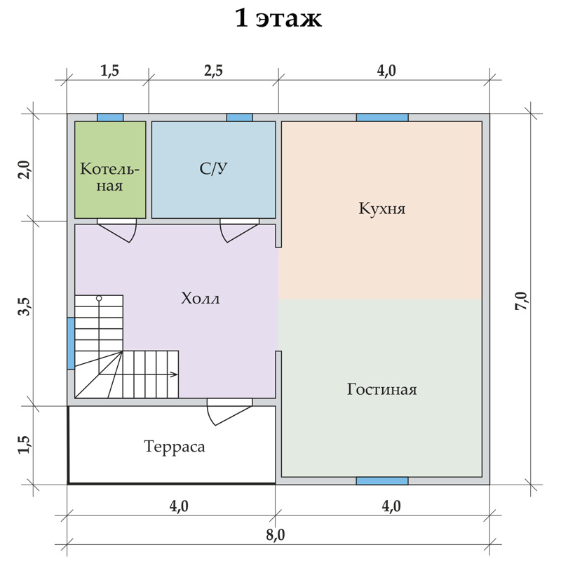 Коттедж «Радужный 7х8» – классический двухэтажный загородный дом, спроектированный по современным стандартам. Общая площадь составляет 112 м2.