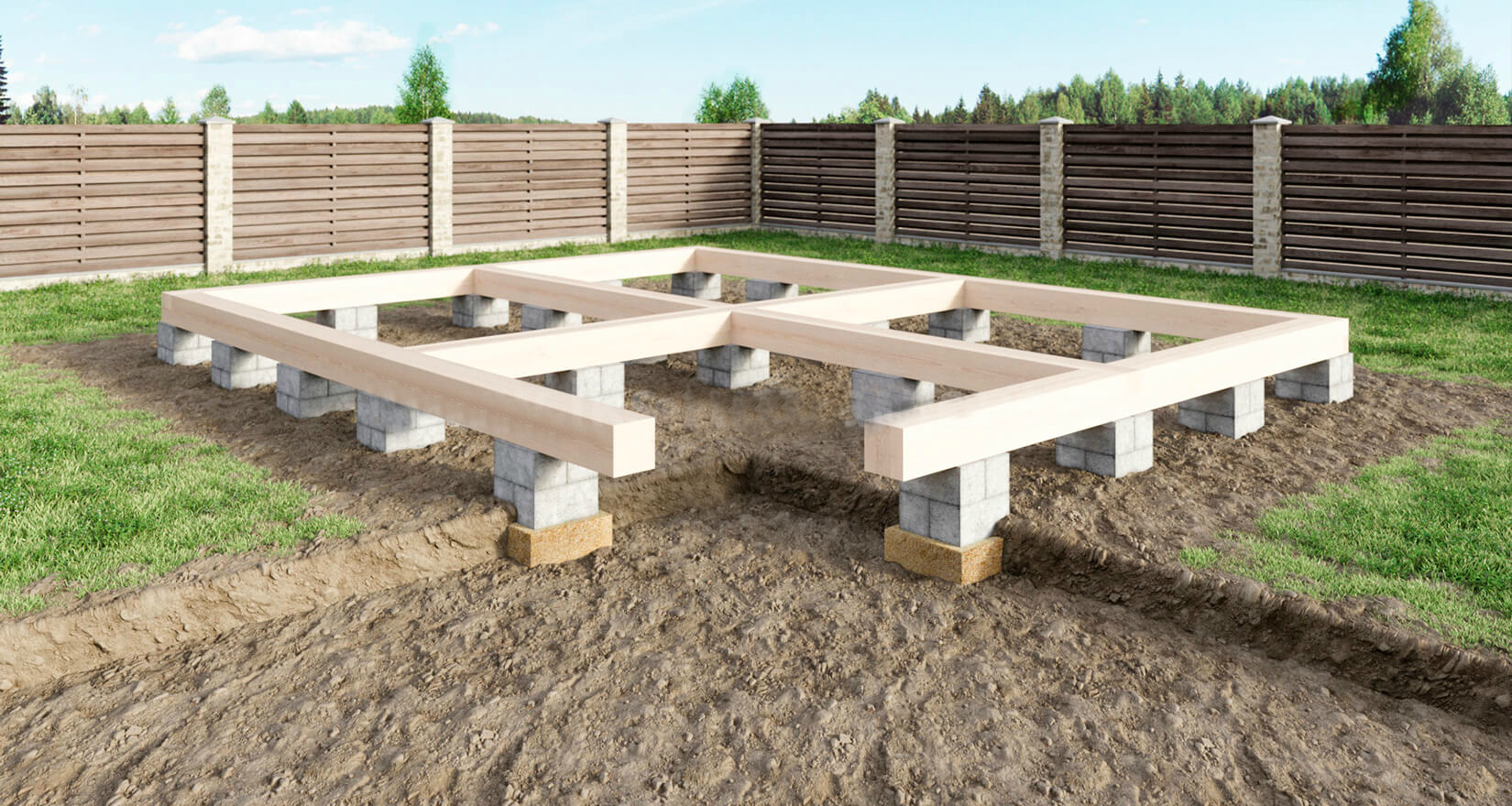 В опорно-столбчатом – они собирается непосредственно при возведении фундамента. Такой тип основы подходит для небольших легких строений: бань, летних кухонь, беседок, хозяйственных построек. Если планируется возвести легкую постройку из брусьев без подвала, оптимальным вариантом станет опорно-столбчатый фундамент Преимущества и недостатки опорно-столбчатого фундамента